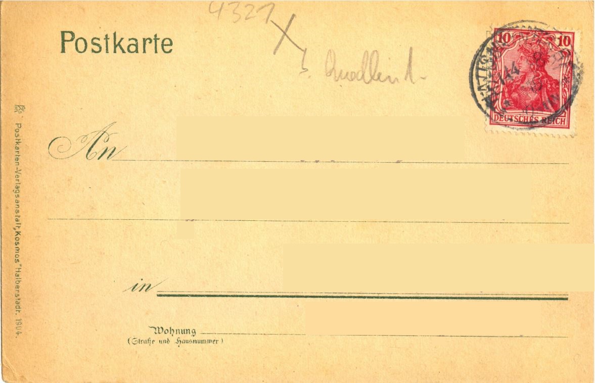 Hier nun auch noch die Rückseite mit einer Briefmarke des Deutschen Reiches: